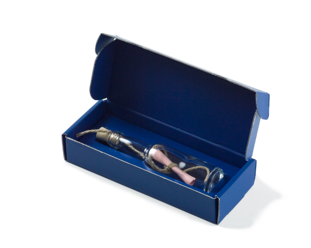Mini-Flaschenpost - aus Glas - in blauer Geschenk-Verpackung